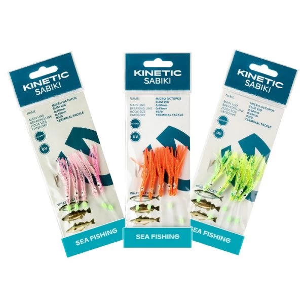 Kinetic Sabiki Micro Octopus Slim Rig – Super stærkt forfang der er lige velegnet til makrel, som til torsk og sej ved kystnært pirkefiskeri.