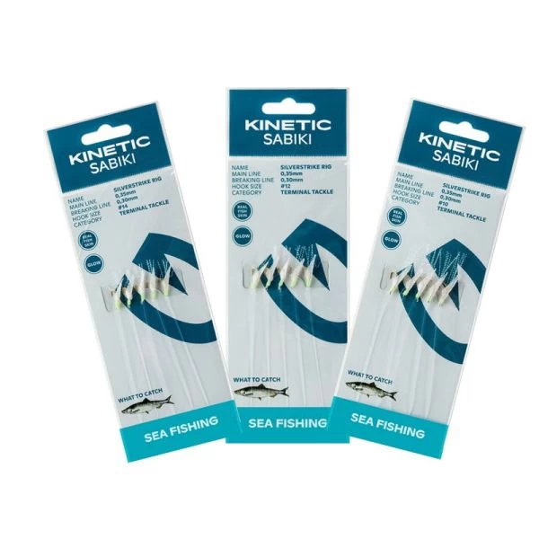Kinetic Sabiki SilverStrike – ægte fiskeskind, ultra skarpe kroge og flash er det der skal til, for at lokke silden/tobisen til bidet! -Mange folk holder af ultra små kroge til sildefiskeri (og diverse agnfisk som tobis!) -og det får du med denne Silver Strike rig!
