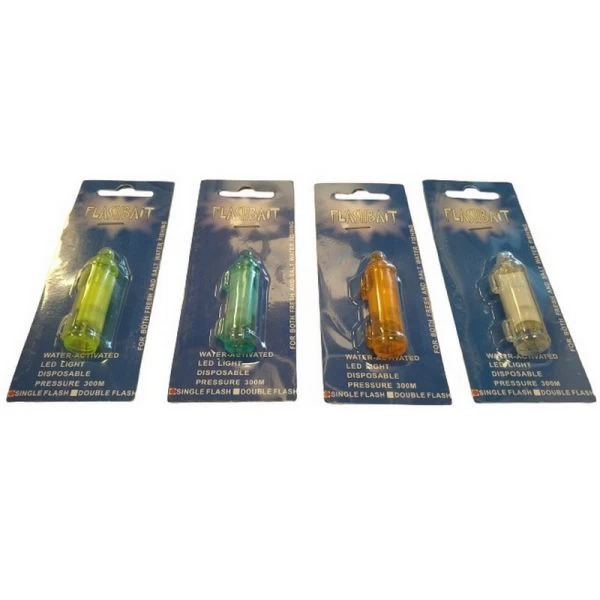 SFG Flashbait – LED lys der tænder automatisk ved kontakt med vand. Nærmest uundværlig til havekatte-rigs, men benyttes også til fladfisk, torsk osv.